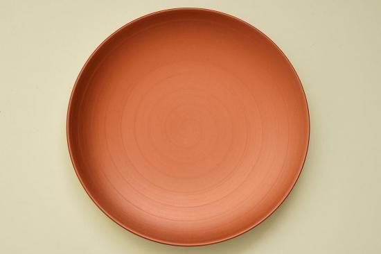 赤銅色の釉薬は手作業で施されているため、一枚ずつ趣が異なります。