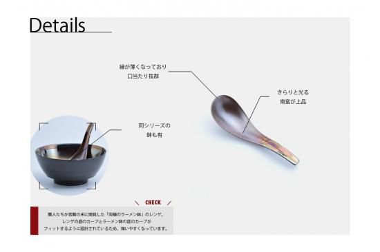 レンゲの底のカーブとラーメン鉢の底のカーブがフィットするように設計されているため、掬いやすくなっています。