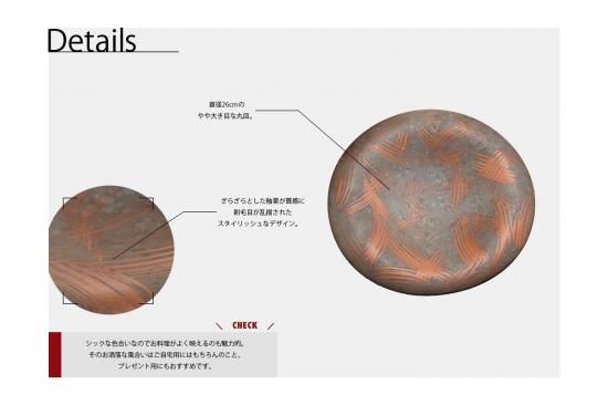 ざらざらとした釉薬が質感に刷毛目が乱描されたスタイリッシュなデザインに仕上がっています。