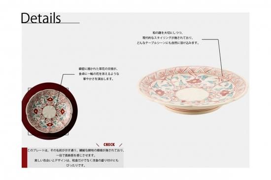 緻密に描かれた草花の文様が、食卓に一輪の花を添えるような華やかさを演出します。