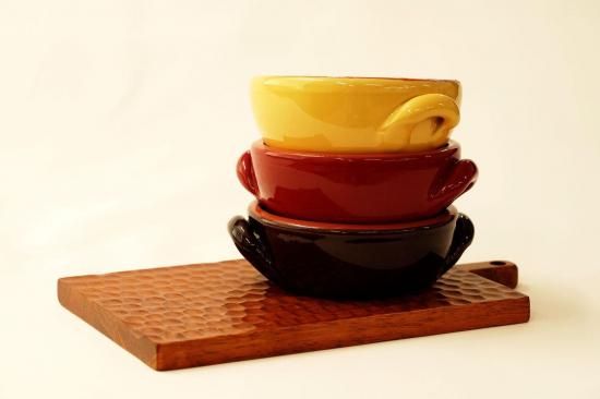 柔らかな丸みのある両手ボールは外側と内側で色が異なるのは盛り付け時に楽しくなるポイントです。