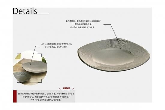 皿の中央部分は円形の撥水印刷がしてあるため、十草の柄をうっすらと見せながらも、料理の盛り付けという機能性を持ち合わせ、デザイン性との両立を果たしています。