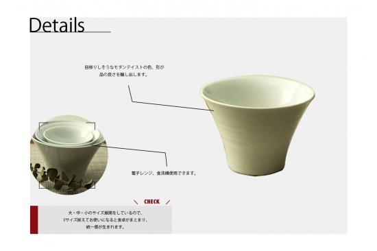 大・中・小のサイズ展開をしているので、3サイズ揃えてお使いになると食卓がまとまり、統一感が生まれます。
