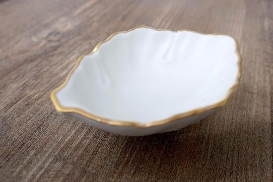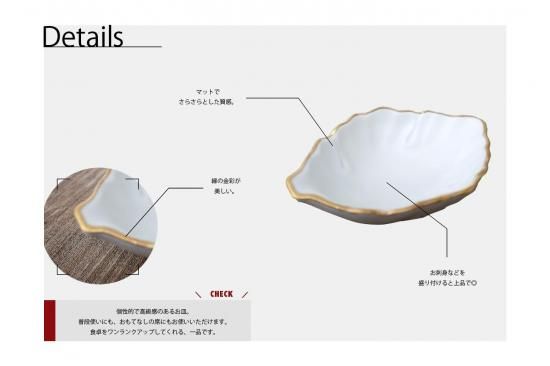 マットな質感に金彩をあしらった練金彩菊葉向付。