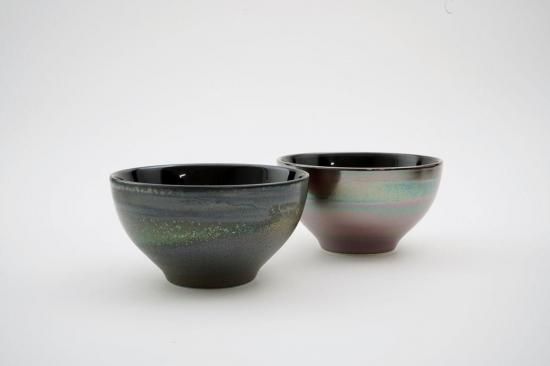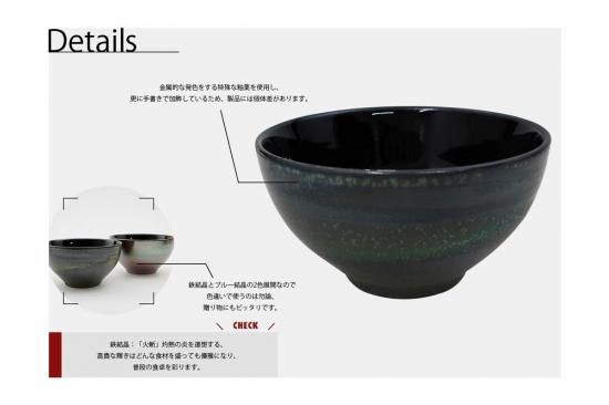 金属的な発色をする特殊な釉薬を使用し、更に手書きで加飾しているため、製品には個体差があります。
