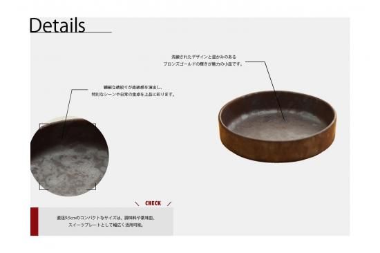 洗練されたデザインと温かみのあるブロンズゴールドの輝きが魅力の小皿です。