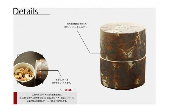 ※こちらの商品はラスター錆筋目茶筒型蓋物のみの販売となります。