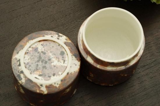 ラスター錆筋目茶筒型蓋物