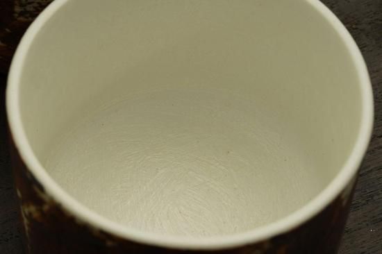 錆のような雰囲気の釉薬の景色に、黒の錆筋模様がきまったシックでスタイリッシュな仕上がり。