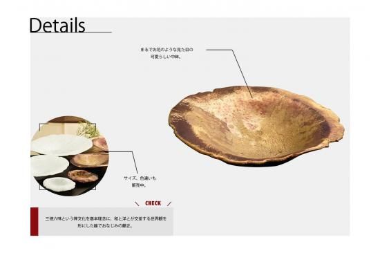 三徳六味の禅文化から継承された日本料理のコンセプトを忘れず大切にしながら、和・洋が複雑に交錯する現代の「食」の形態に対応したスタイルを器を通して表現しています。