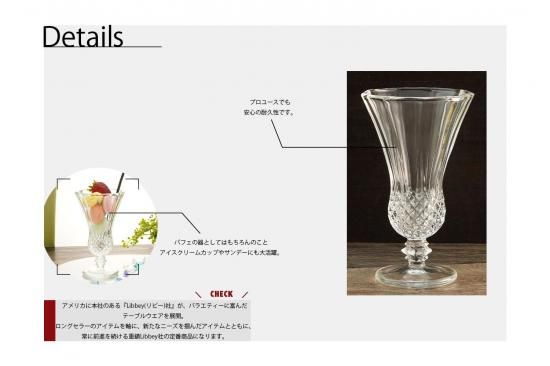 デザートビュッフェの一つやパフェの器としてはもちろんのことアイスクリームカップやサンデーにも大活躍。
