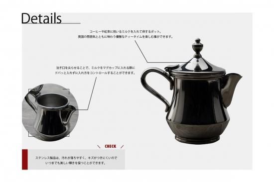 コーヒーや紅茶に用いるミルクを入れて供するポット。