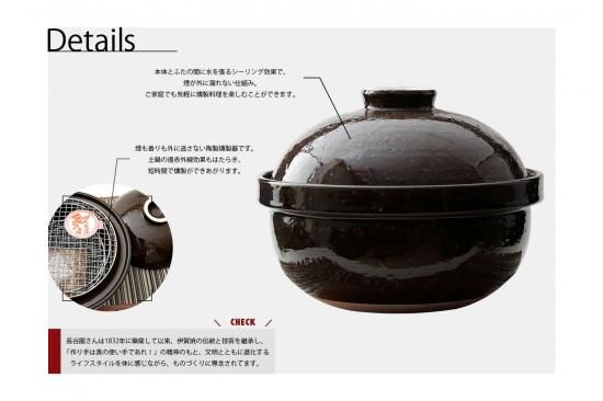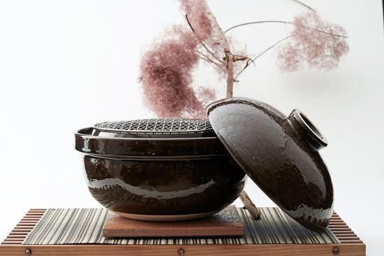 煙も香りも外に逃さない陶製燻製器です。