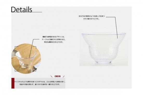 クリスタルのような輝きを放つこのボウルは、どんな料理とも相性が良く、和食や洋食を問わず、盛り付ける食材を一層引き立てます。