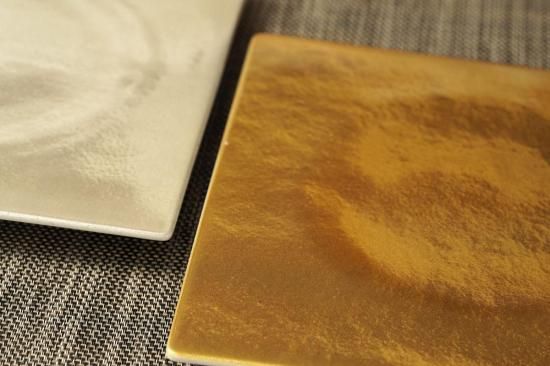有田焼の生地に漆を吹き付けてコーティングしており、こすっても塗装が落ちにくくなっています。