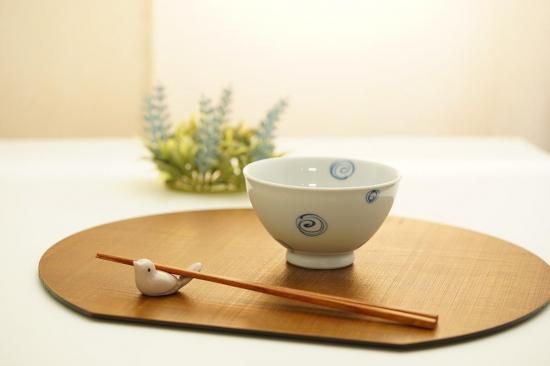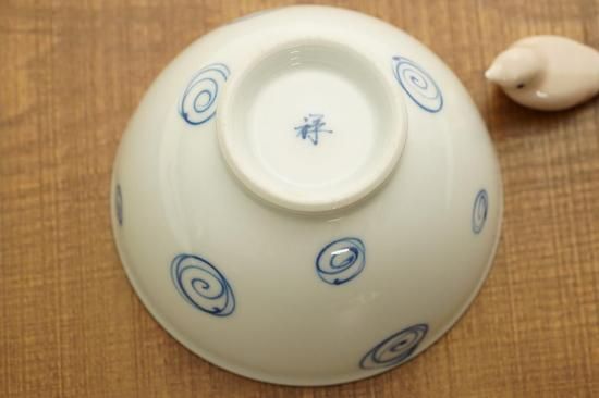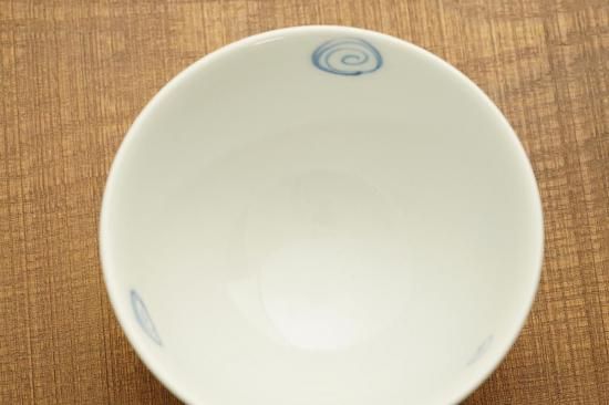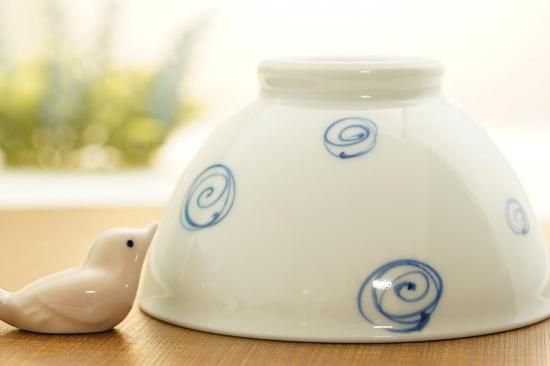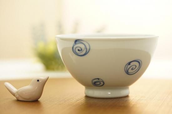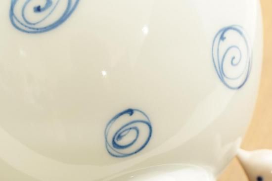 艶やかな白磁に呉須で描かれた渦巻き模様が印象的。