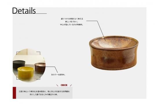 三徳六味の禅文化から継承された日本料理のコンセプトを忘れず大切にしながら、和・洋が複雑に交錯する現代の「食」の形態に対応したスタイルを器を通して表現しています。