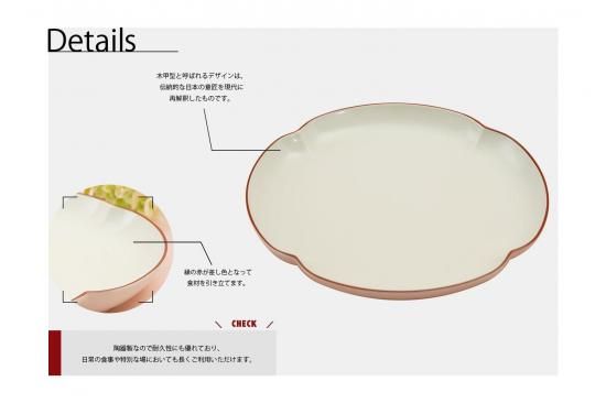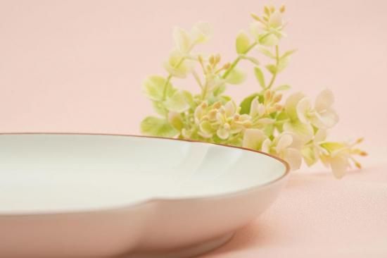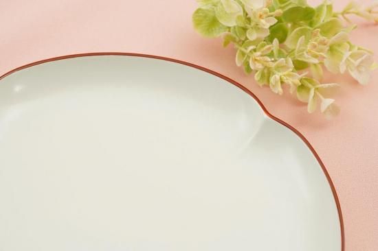 白いお皿は食材を引き立て、縁の赤色は差し色として印象を与えてくれます。