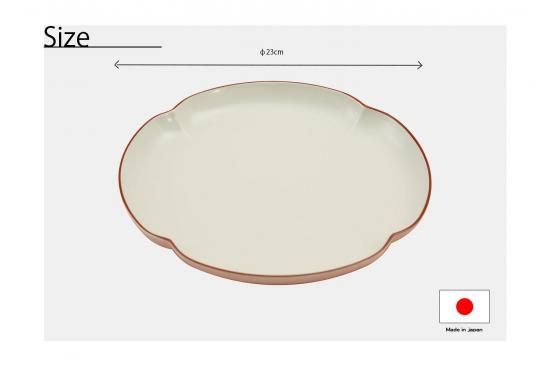 直径23cm、高さ2.5cmのゆったりとしたサイズ感で、はっきりとした赤い色の縁が特徴です。