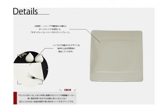 大変薄く、シャープで機能性にも優れたボーンチャイナを使用した、『ビレロイ&ボッホ』の『モダングレース』シリーズのフラットプレート。