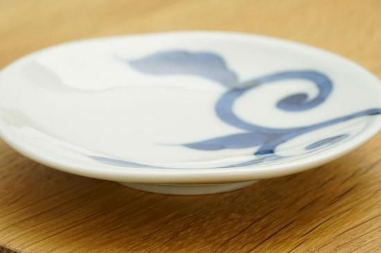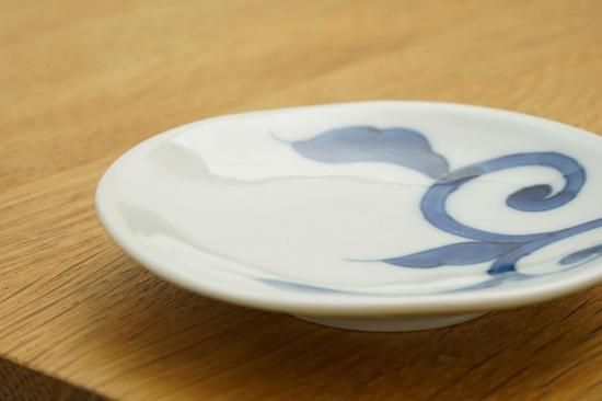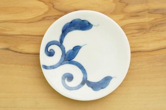 流れるような筆使いで描かれた唐草文様が特徴的な豆皿。