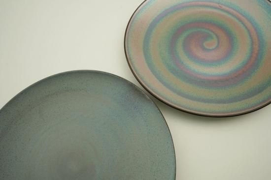 金属的な発色をする特殊な釉薬を使用し、更に手書きで加飾しているため、製品には個体差があります。