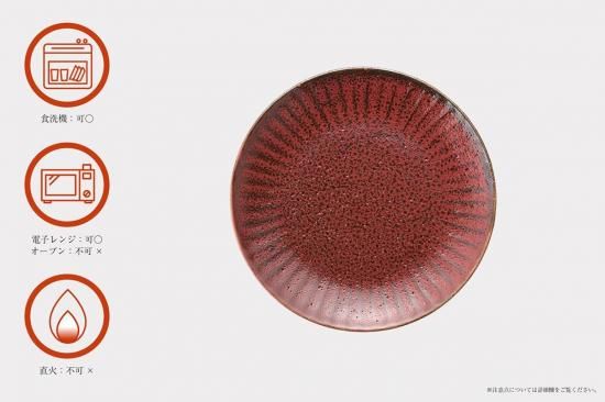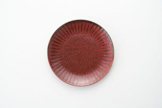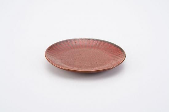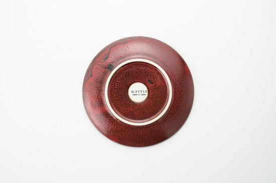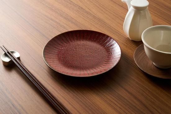 焼き締めのような力強い質感と、インパクトのある深い朱色が美しい『朱印』シリーズのプレート。