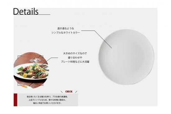 メインディッシュの盛付やパスタ皿、大きさを生かしてワンプレート料理にも最適。