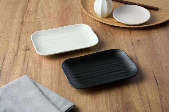 長角形のフォルムは、料理の配置が映えるだけでなく、収納時もスペースを有効活用できる実用的な形状です。