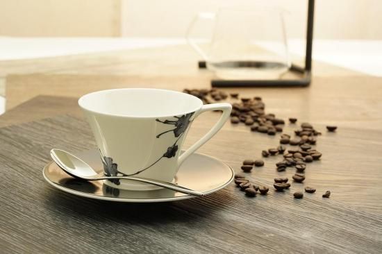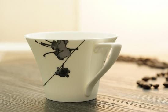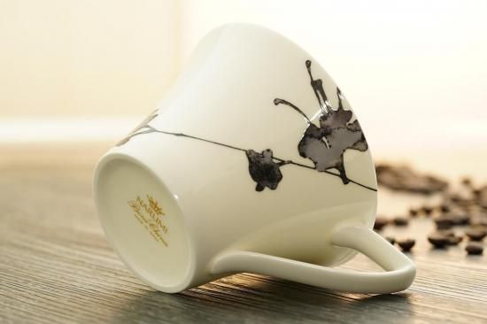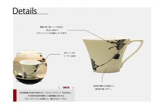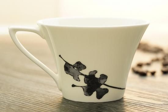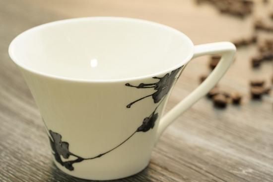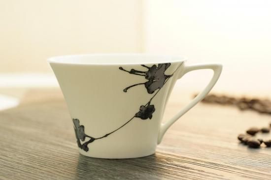 その技術を技術を駆使した高級磁器と言われる『ボーンチャイナ』を使用した、艶やかなカップです。