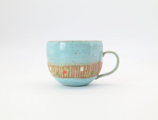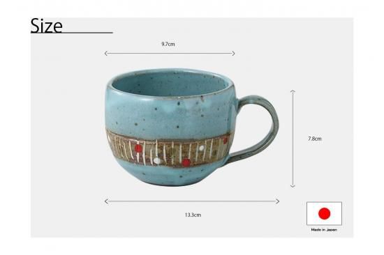 和モダンを感じさせるレトロな色合いと、手作業で刻まれた細かな十草と、釉薬で付けた水玉模様が魅力的。