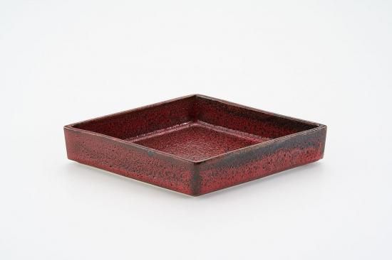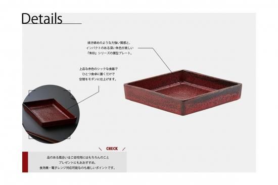 焼き締めのような力強い質感と、インパクトのある深い朱色が美しい『朱印』シリーズのプレート。
