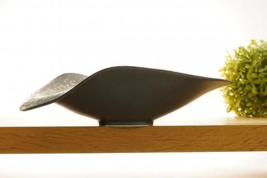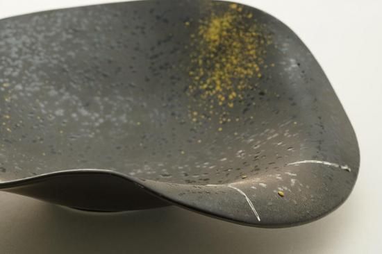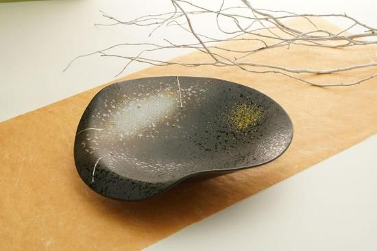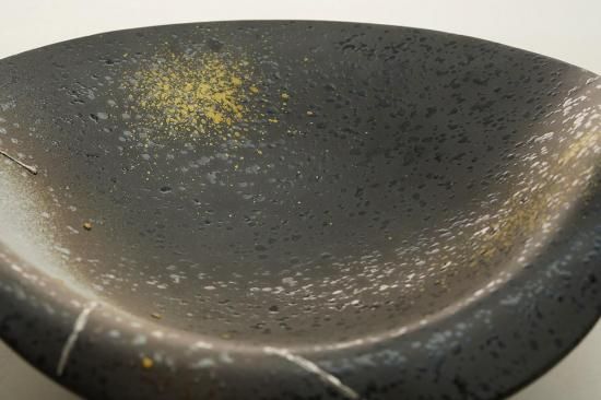 深い黒釉に夜空のような趣が感じられる、美しく個性的なデザインが特徴の鉢です。