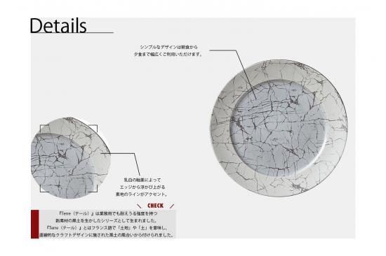 『Terre(テール)』とはフランス語で「土地」や「土」を意味し、直線的なクラフトデザインに施された黒土の風合いからその名が付けられました。