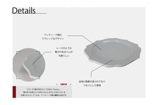 アンティーク感溢れる風合とエレガントで動きのあるリム部分は、大人可愛いデザインで食卓を優雅な雰囲気にしてくれます。