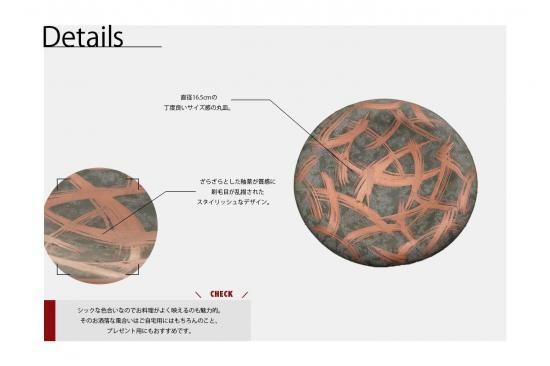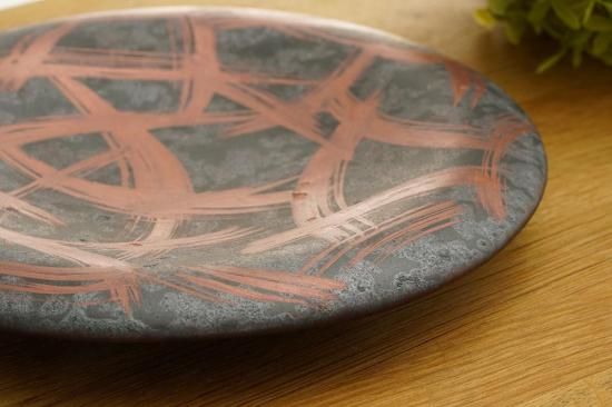 ざらざらとした釉薬が質感に刷毛目が乱描されたスタイリッシュなデザインに仕上がっています。