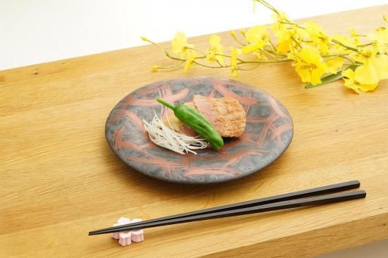 ※こちらの商品は5.5寸垂渕皿 黒錆絞赤刷毛のみの販売となります。