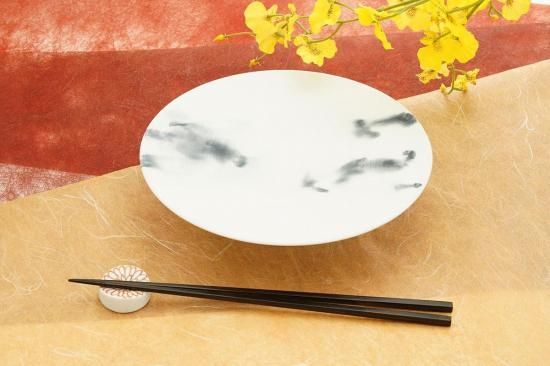 上質な磁器に施された黒流し模様と水滴模様が、和食器らしい風合いと上品な印象を与えます。
