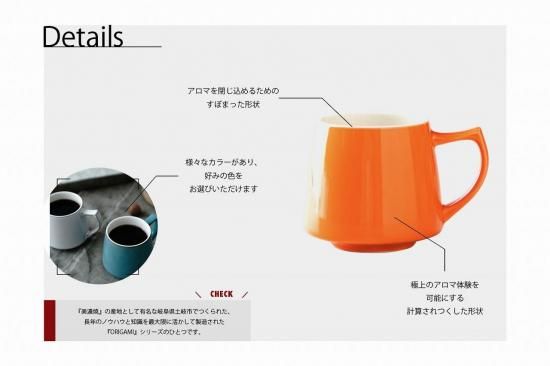 コーヒーを香りで楽しむための全く新しいマグカップ”アロマシリーズ”。