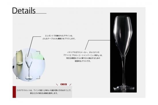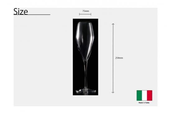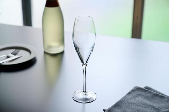 クリスタルのように透明で、シャンパンやプロセッコの繊細な泡立ちを美しく映し出します。