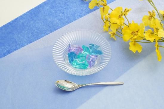透明なガラスのお皿は卓上に涼し気な印象を与えます。