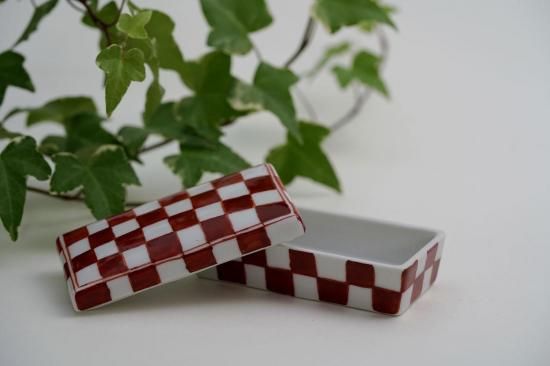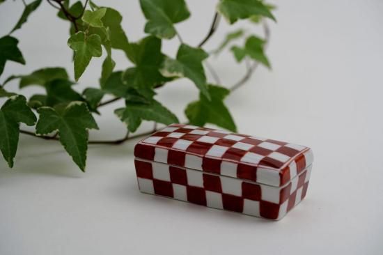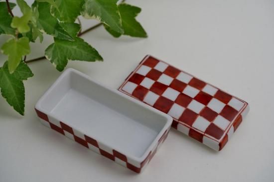赤色の市松模様がとってもレトロな雰囲気を演出してくれる蓋付楊枝入。