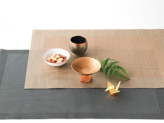 シックな黒紬に包まれた、内側の金彩が華やかな盃。