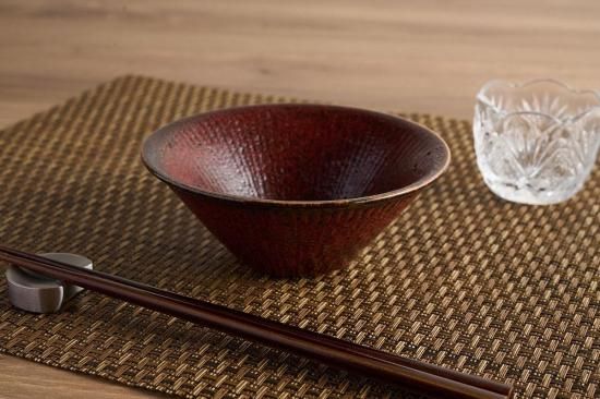 上品な赤色のシックな食器は、ひとつ食卓に置くだけで空間をモダンに仕上げます。
