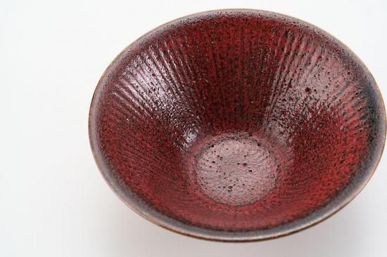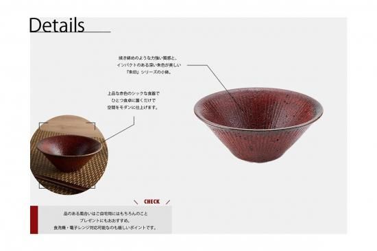 焼き締めのような力強い質感と、インパクトのある深い朱色が美しい『朱印』シリーズの小鉢。