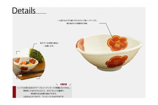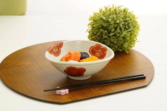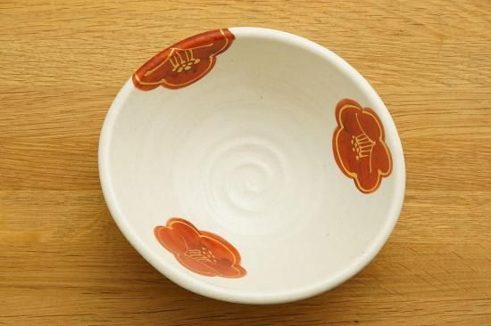 一人前のおかずを盛り付けるのに丁度いいサイズの、梅の絵付けが特徴的な中鉢。
