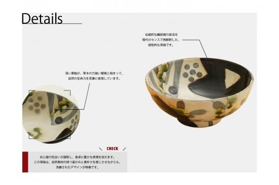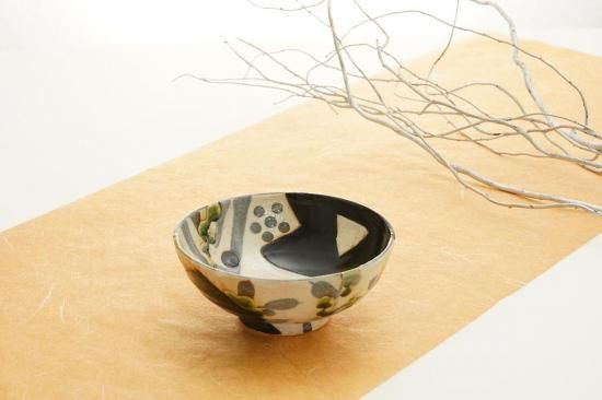 伝統的な織部焼の技法を現代のセンスで再解釈した、個性的な茶碗です。