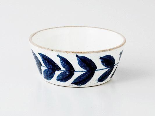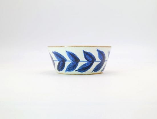 柔らかい粉引の上に、大胆に呉須で大きく描かれた紺色の若葉が印象的なうつわ。