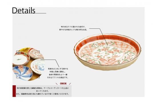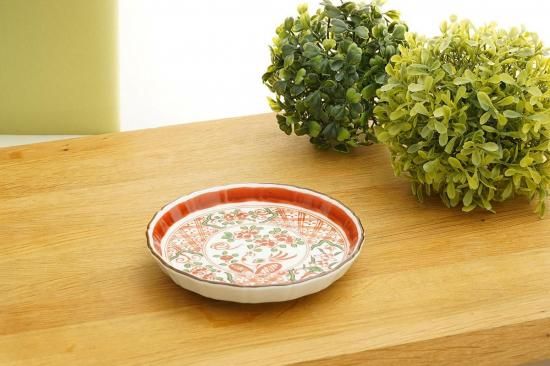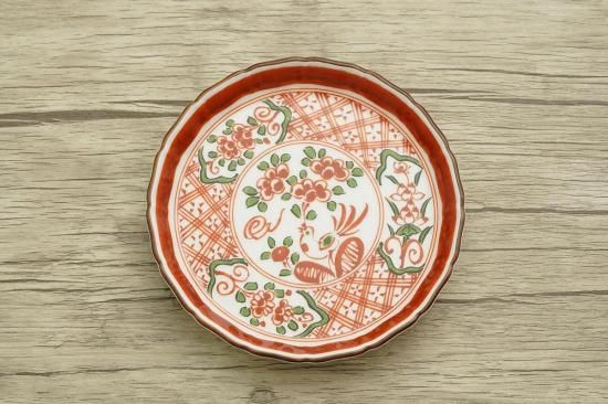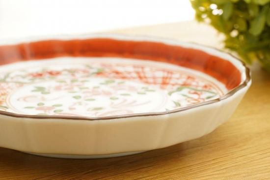 味のあるラフに描かれた絵付け、鮮やかな赤絵がとても魅力的なお皿は、使うほどに心を奪われる美しさを放ちます。