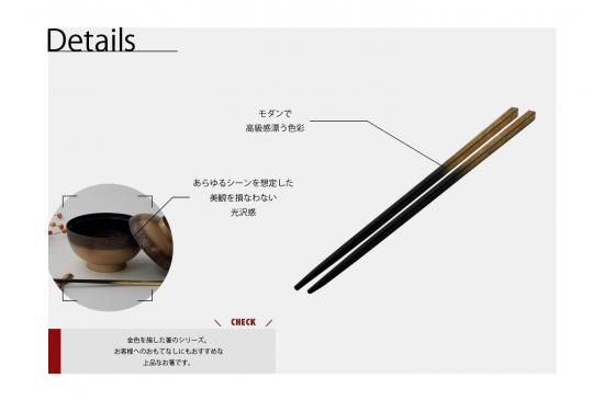 金色を施した箸のシリーズ。